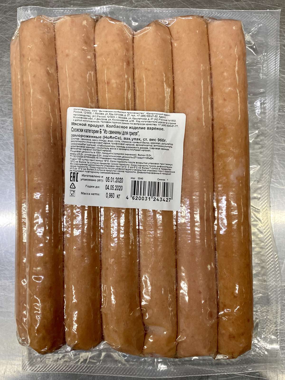 Сосиски свиные для гриля "Дымов" с/м 960 гр*14